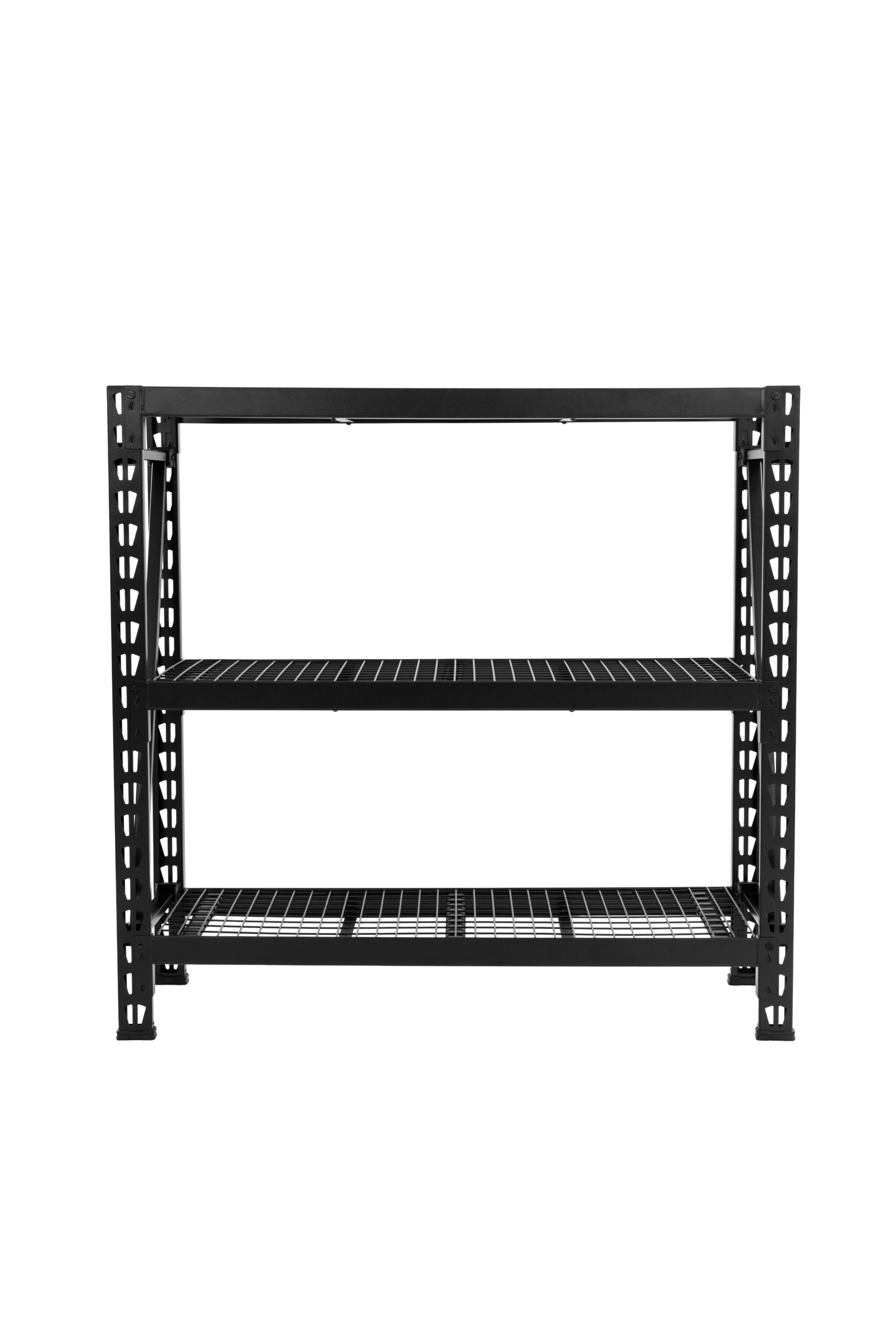 Astromach 6-feet tall, 3-tier steel wire deck industrial rack was designed and engineered to provide heavy-duty storage options. Four adjustable wire grid shelves can support up to 1,500 lbs. per shelf with the weights evenly distributed. The product is made from powder-coated steel for corrosion resistance.