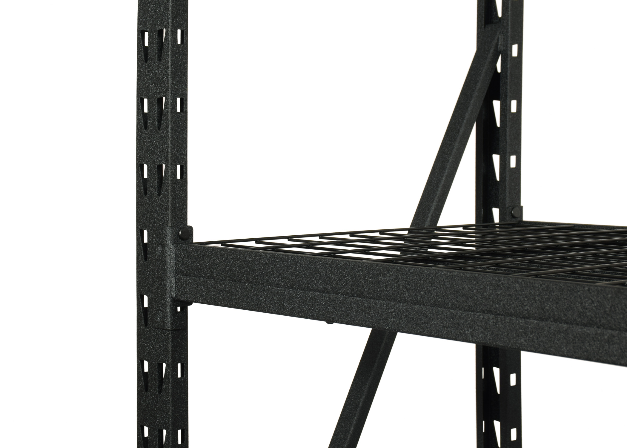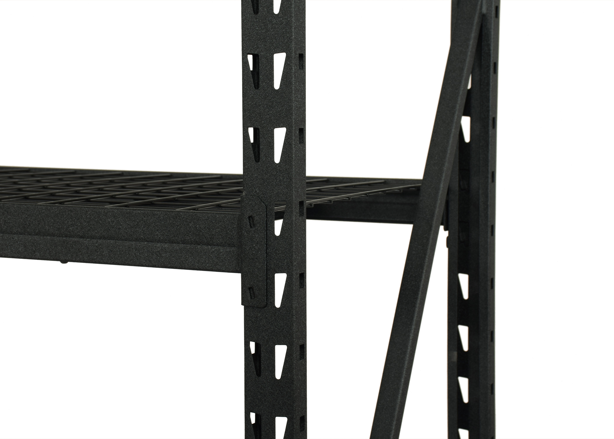 Steel locking drop pins ensure that each shelf is properly installed and add safety to the product