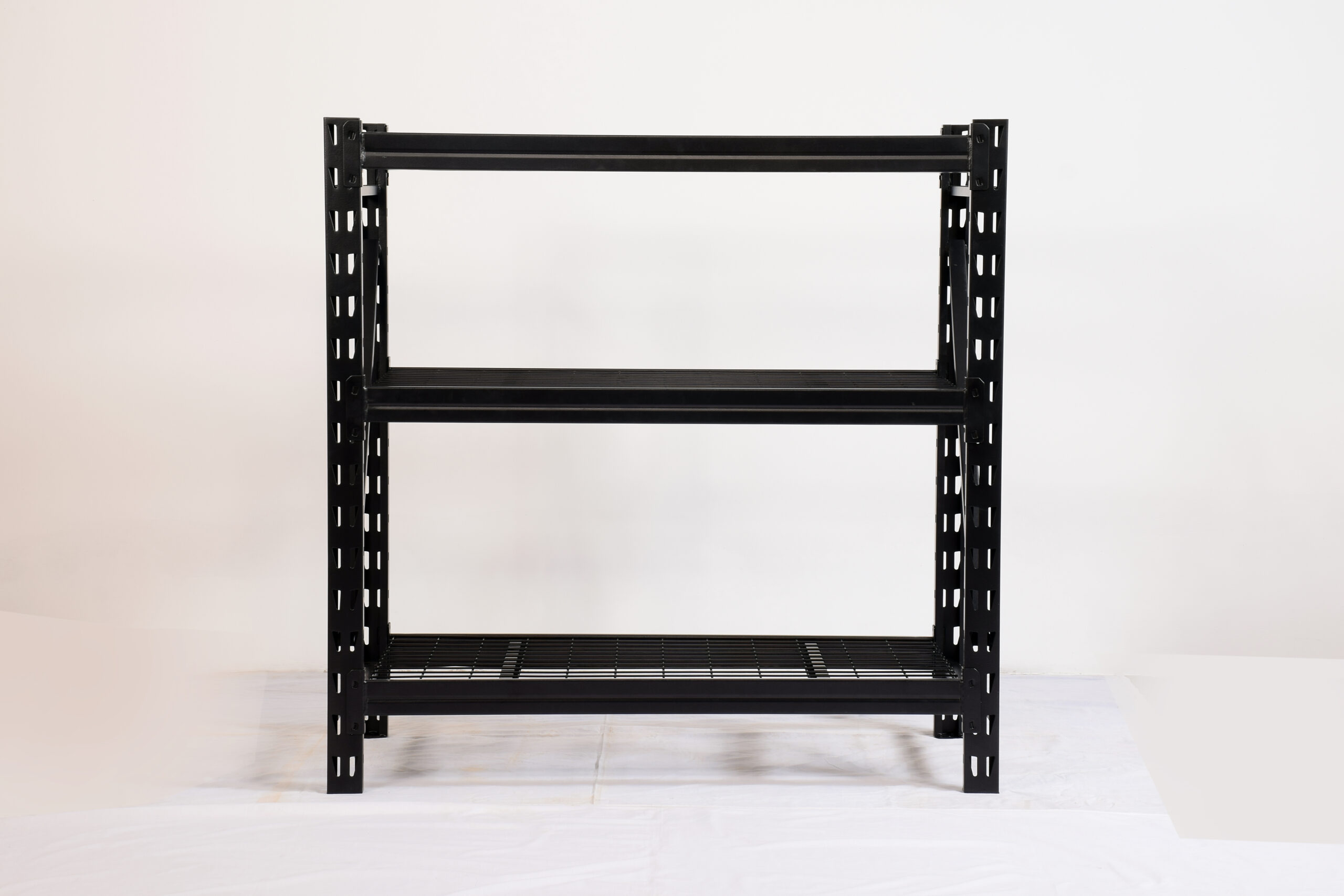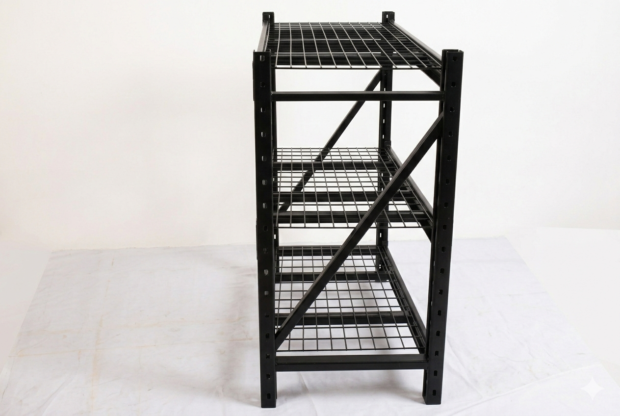 Astromach 6-feet tall, 3-tier steel wire deck industrial rack was designed and engineered to provide heavy-duty storage options. Four adjustable wire grid shelves can support up to 2,000 lbs. per shelf with the weights evenly distributed. The product is made from powder-coated steel for corrosion resistance.