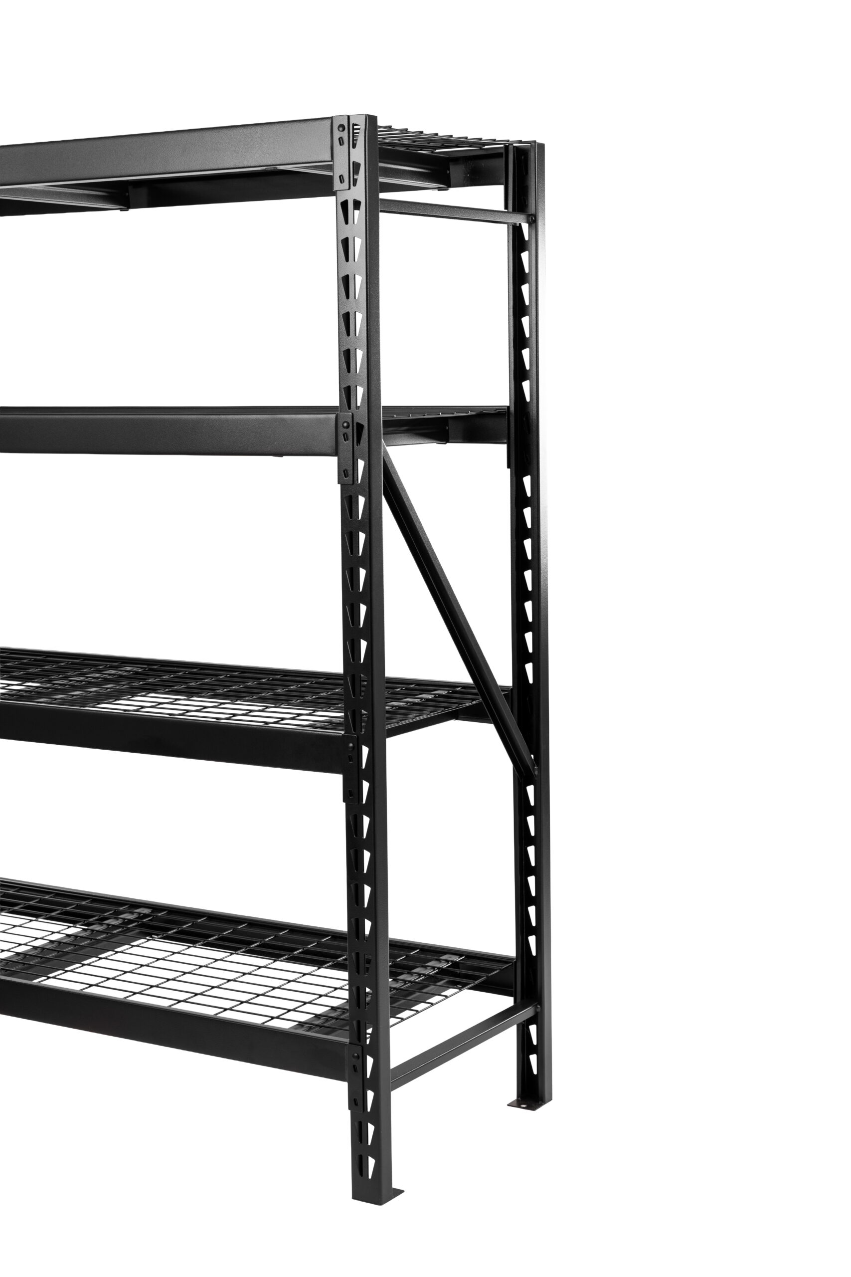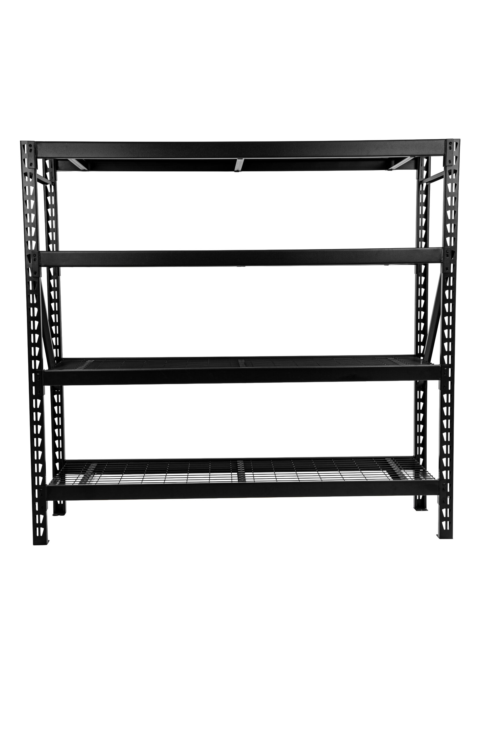 Astromach 6-feet tall, 4-tier steel wire deck industrial rack was designed and engineered to provide heavy-duty storage options. Four adjustable wire grid shelves can support up to 1,500 lbs. per shelf with the weights evenly distributed. The product is made from powder-coated steel for corrosion resistance.
