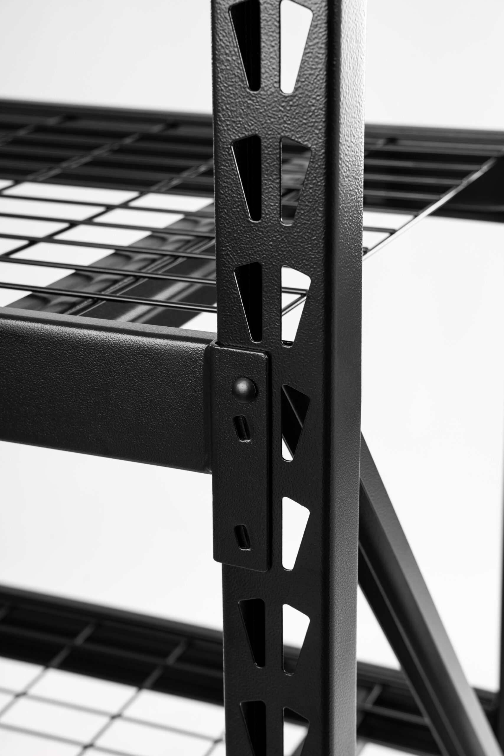 Steel locking drop pins ensure that each shelf is properly installed and add safety to the product
